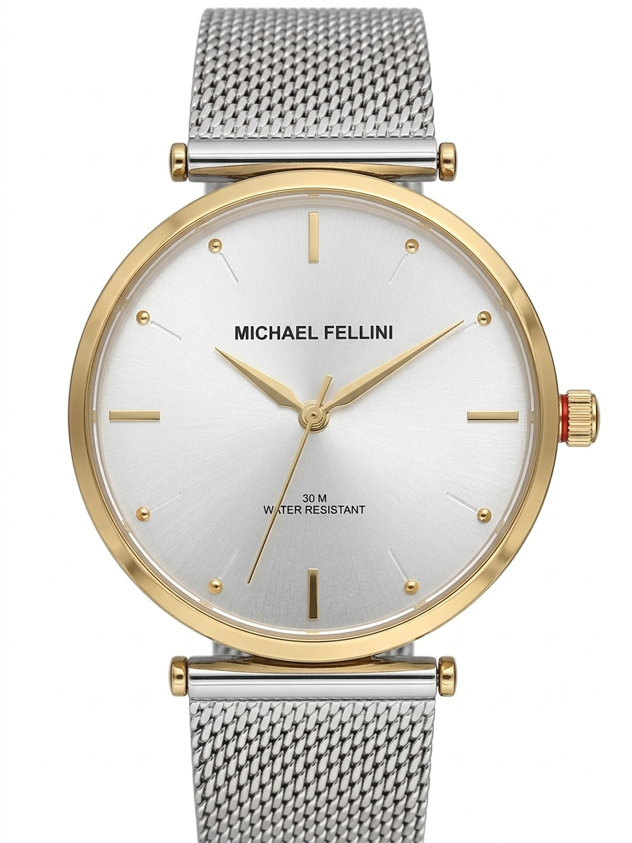 Eleva tu estilo diario con el Michael Fellini 2168-1. Un reloj diseñado exclusivamente para la mujer que busca sutileza y elegancia. Su pulso en malla milanesa bitono se adapta perfectamente a tu muñeca, ofreciendo un acabado de lujo que complementa cualquier outfit.